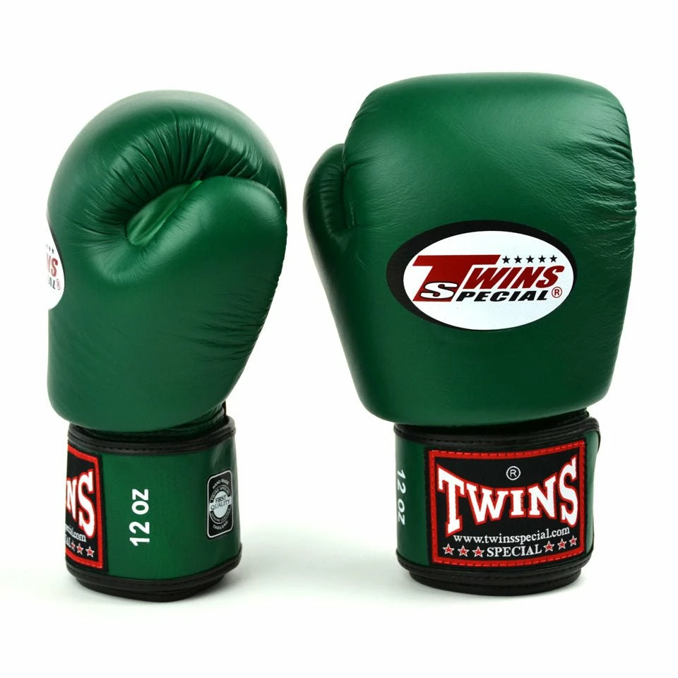 BGVL3 Twins Dark Green Velcro Boxing Gloves