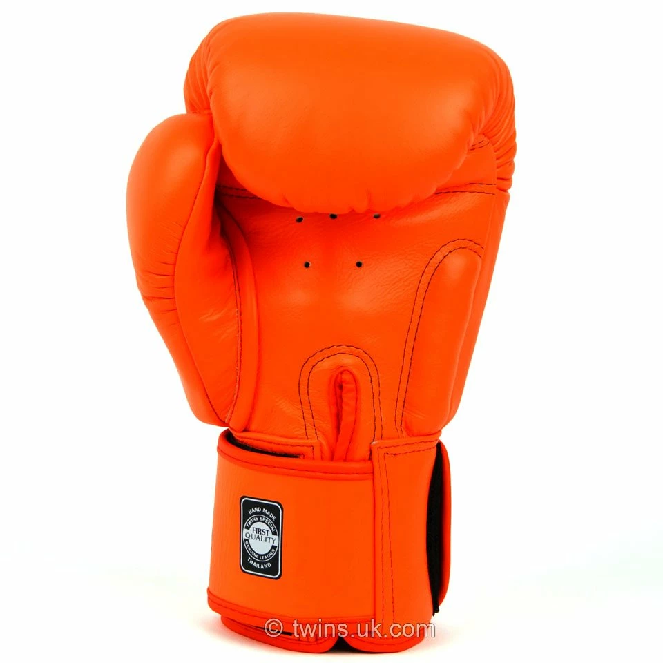 Twins special boxing gloves are some of the highest quality Muay Thai gloves in the world. Handcrafted in Thailand and made from high-quality cowhide leather they are reputed across the globe for their performance. The thick wrist support and padded thumb area help block kicks and elbows. A large hand compartment and thick padding allow a range of uses from varying sizes of the glove and the designs range from simple block colours to the excellent fancy print range. A triumph in Muay Thai glove design.