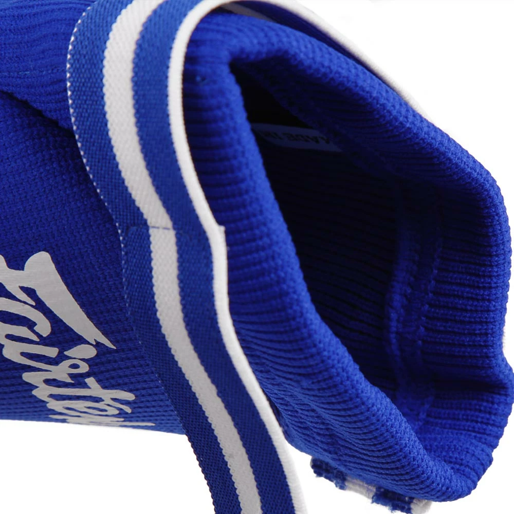 The Fairtex EBE Blue Competition Elbow Pads are premium elastic cotton elbow pads from Fairtex. These elbow pads can be used both for competition and training. They contain high impact padding which protects the elbow alongside a velcro fastening at the top for a secure fit. They come in one size only.