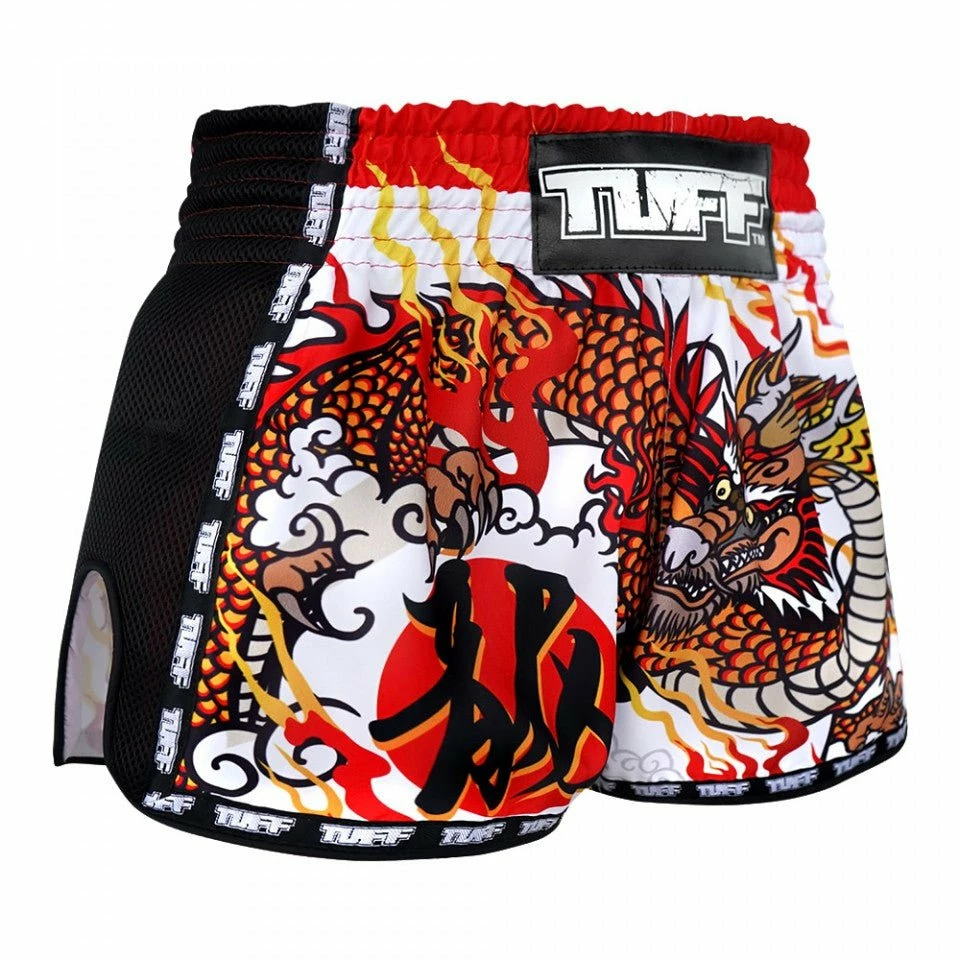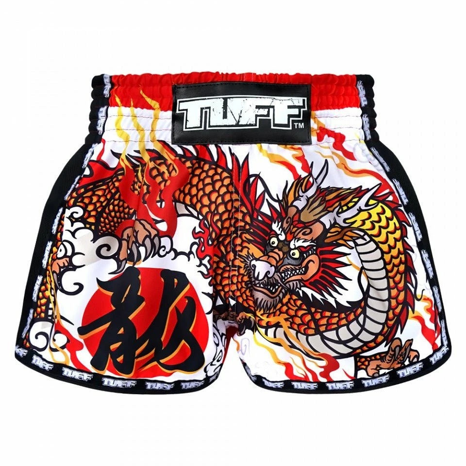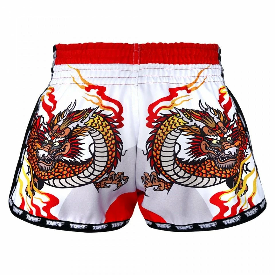 MRS204 TUFF Muay Thai Shorts Retro Style White Chinese Dragon