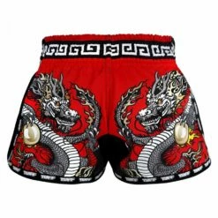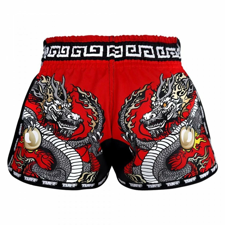 MRS205 TUFF Muay Thai Shorts Retro Style Red Chinese Dragon