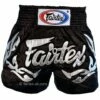 Traditional style Muay Thai shorts with full waistband and wide leg cut.