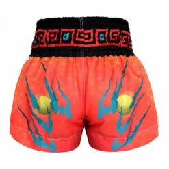 The blue dragon print on this pair of boxing shorts highlights the figure of two aqua blue dragons. The design of this pair of boxing shorts is classic, yet fashionable. The black waistline makes the shorts themselves more stylish, while it intercepts with red linings.