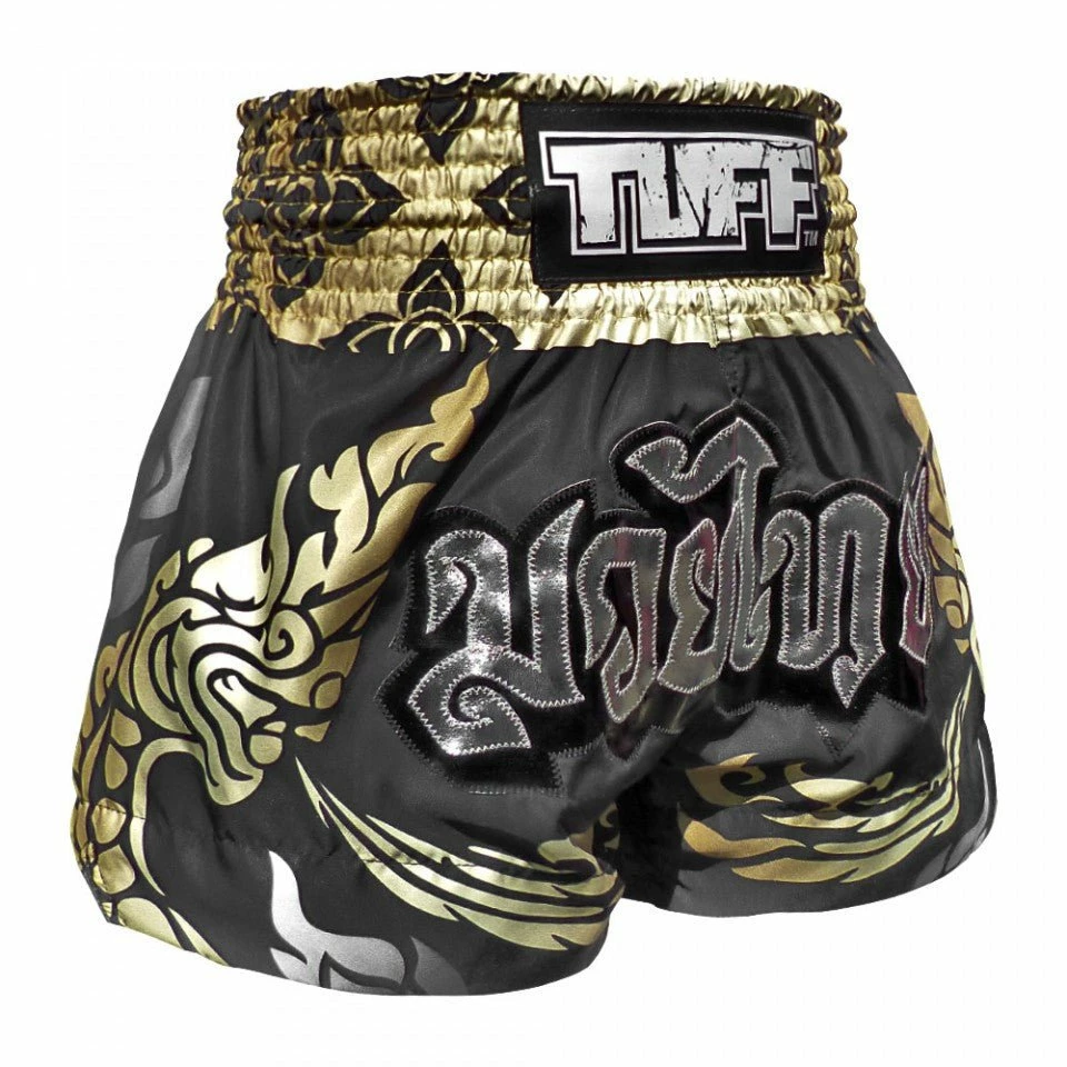 MS631 TUFF Muay Thai Shorts Thai King Of Naga Black