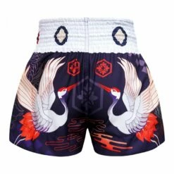 MS639 TUFF Muay Thai Shorts Navy Blue Japanese Drawing Crane Birds