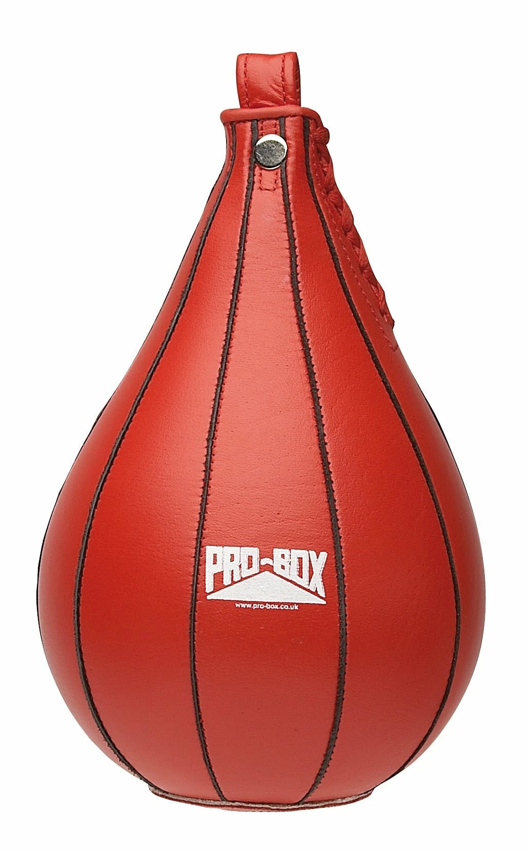 The Pro Box Red Ten Panel Speedball is a speedball manufactured from ten separate panels. As well as being professionally hand stitched leather the ten separate panels give the ultimate shape, performance and response. The size of this speedball is 15.5cm Dia.x 26.5cm high.
