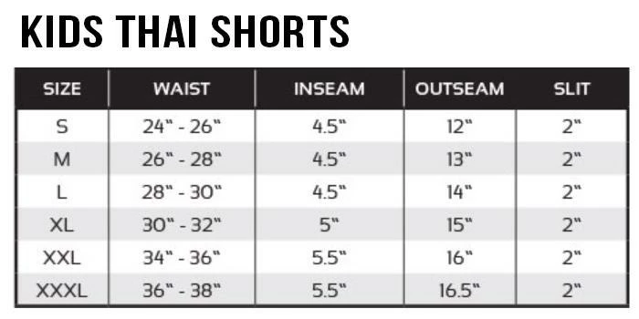 Revgear Kids Muay Thai Shorts range is one of the best made Thai Boxing shorts in the business finished in stylish black with one of four bright colours to match the kid’s kickboxing equipment line. Using high-quality satin and a genuine Thai-style cut these shorts are perfect for most kids martial arts as well as the obvious Muay Thai they can be used for kickboxing, boxing and MMA. The sizing is suitable for kids between the ages of 5 and 12 depending on their Size/Age ratio with three sizes S, M, L.